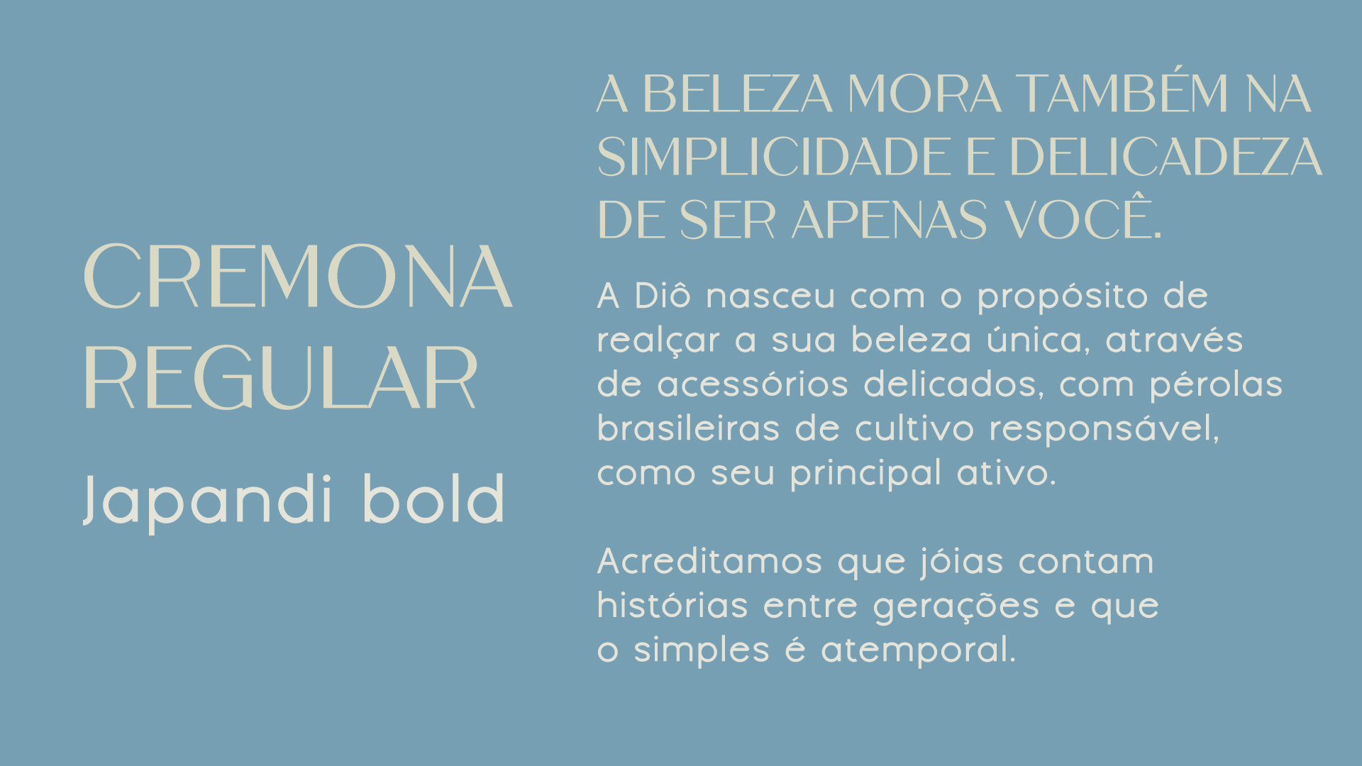 [PT - BR] Diolina é uma marca de jóias especialista em pérolas de cultivo consciente, com peças delicadas que não fazem menção a cultura de ostentação. A marca enaltece a cultura praiana, o habitat natural do seu principal material, e a beleza que existe na simplicidade e o prazer e alegria de ser único. A intenção é criar peças que compõem e potencializam a beleza de cada um, criando uma comunidade que abraça a singularidade e comemoram as coisas simples da vida como a alegria em estar com amigos.